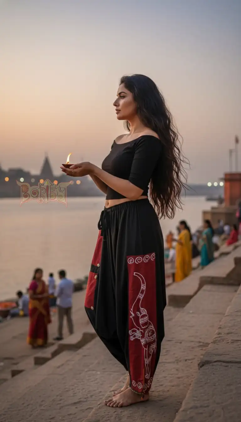 Categories: Casual, Casual, Ethnic, Ethnic, Fusion, Fusion, Men's, NEW ARRIVALS, New Arrivals, Women's Tag: harem black hand painted elephant