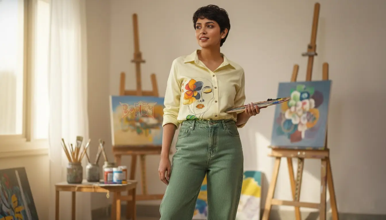 SKU: N/A Categories: Formal, Fusion, New Arrivals, Party, Women's Tag: women's hand painted boho lime full sleeve shirt