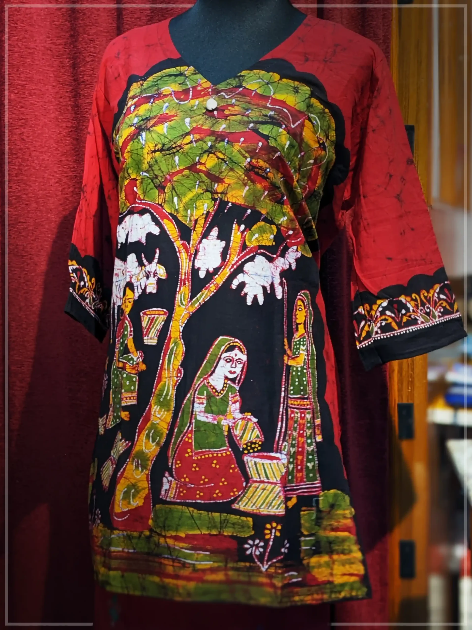 #Red base color provides a bold and clean canvas for this beautiful batik artwork