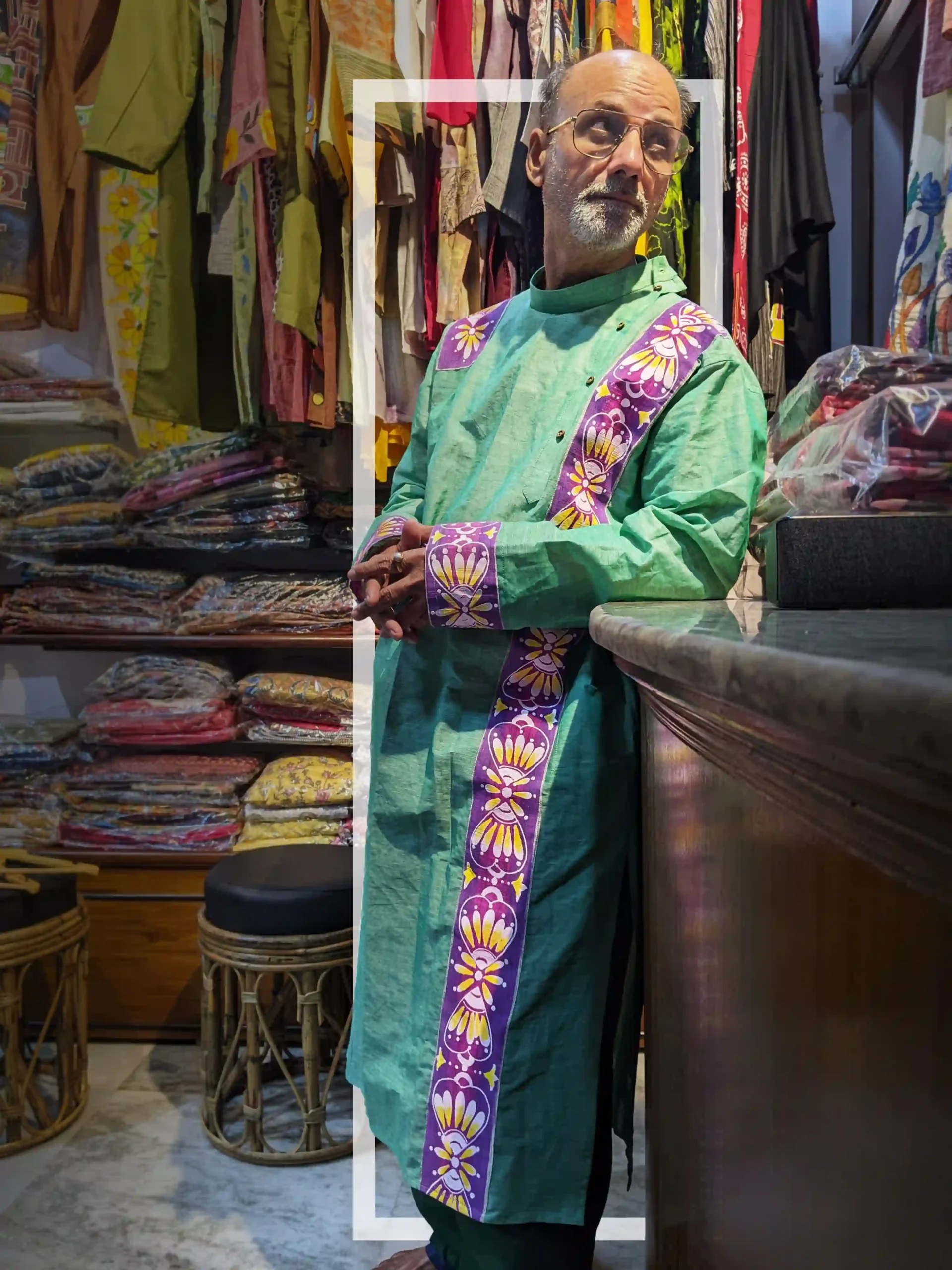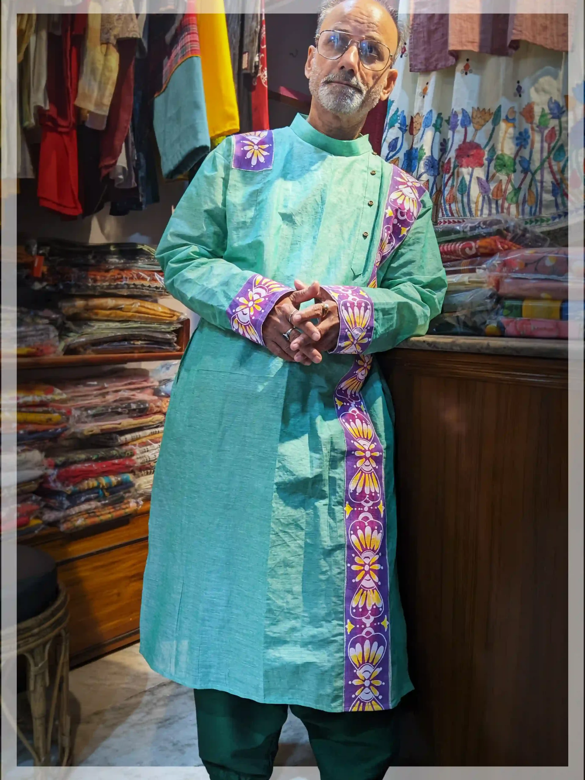`Hand painted cotton panjabi kurta for men